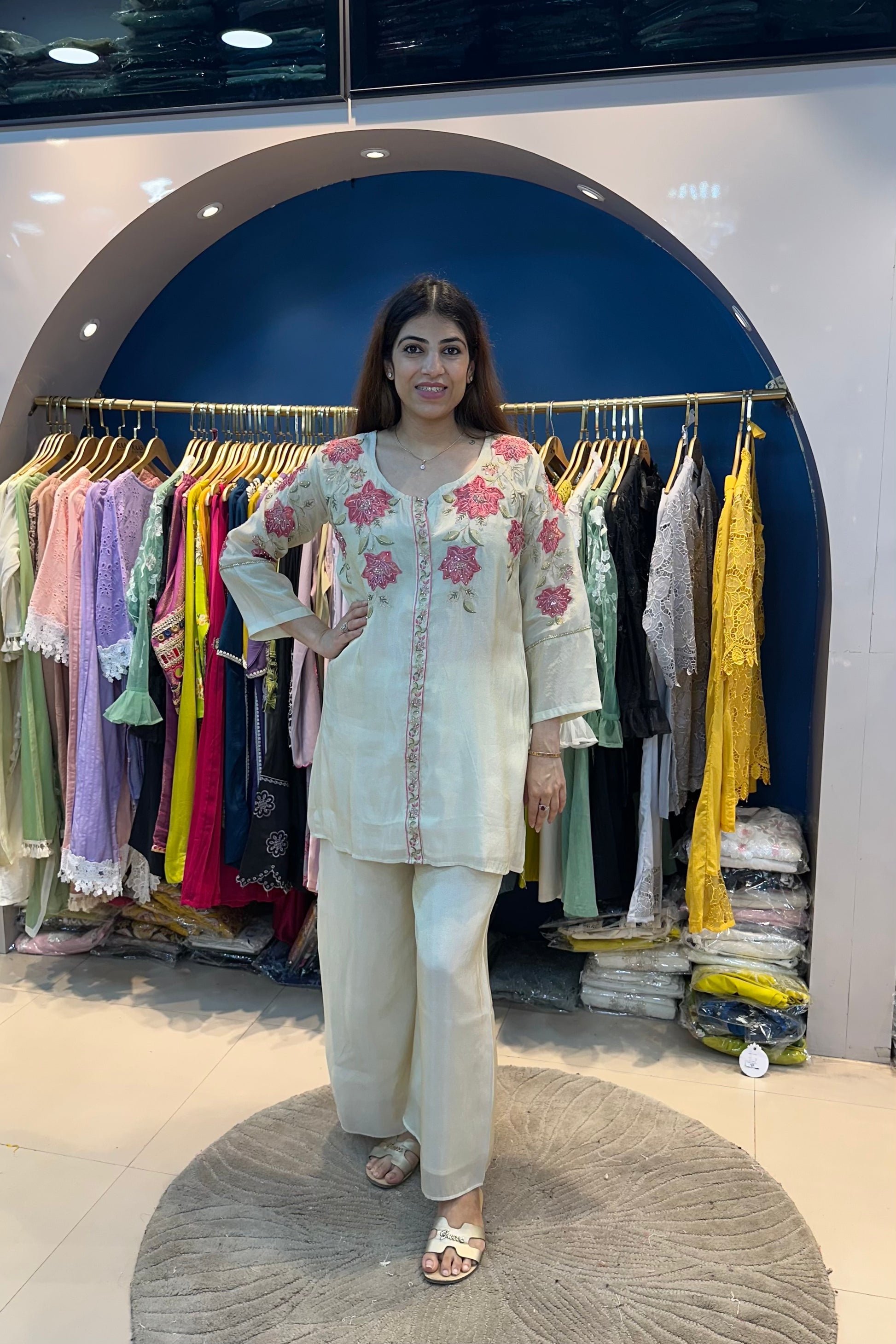 2pc Shimmer Tissue Partywear Co-ord Set paired With Plazzos