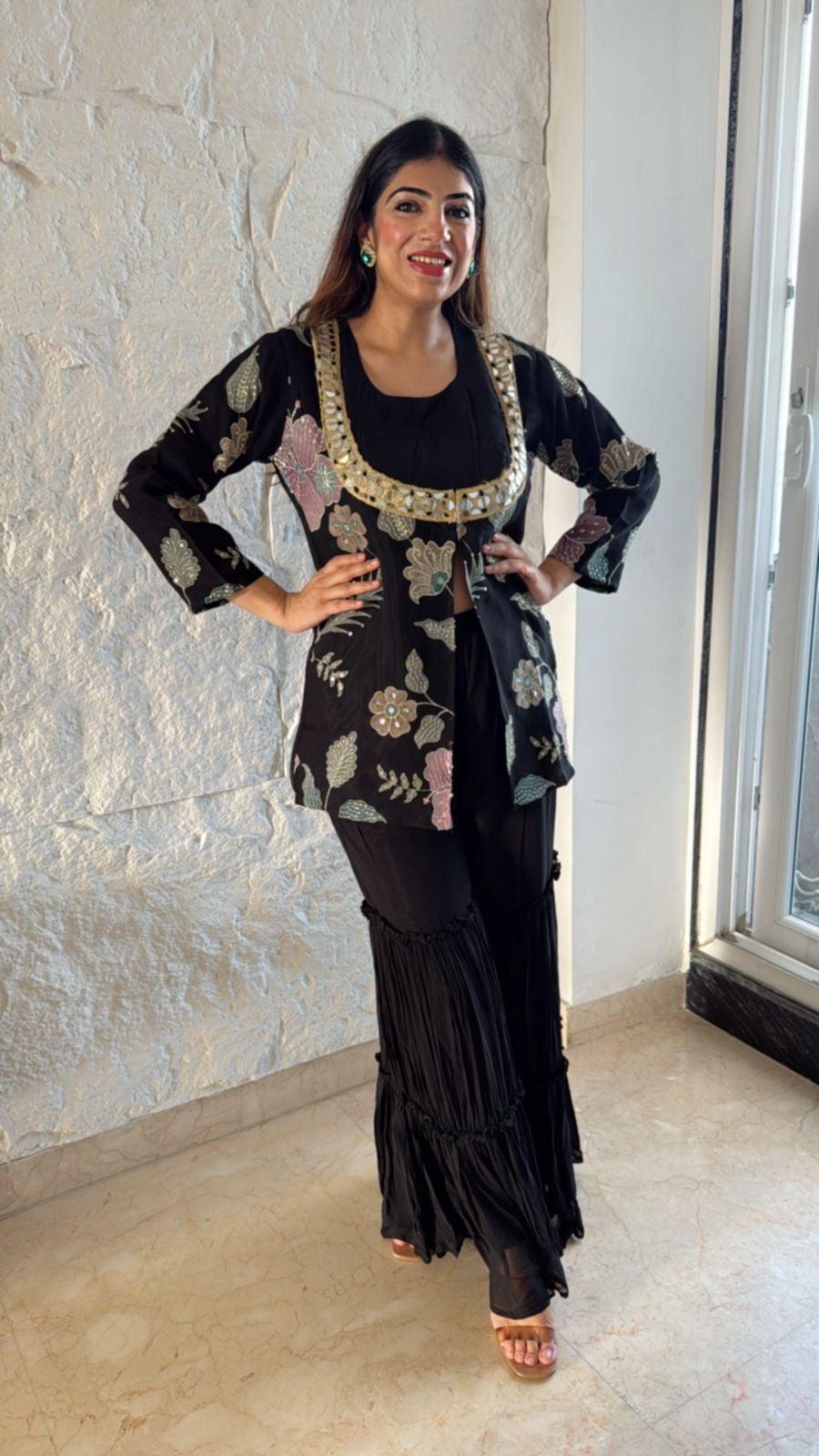 Decrease quantity for 3pc pure georgette sharara nd inner with organza shirt
