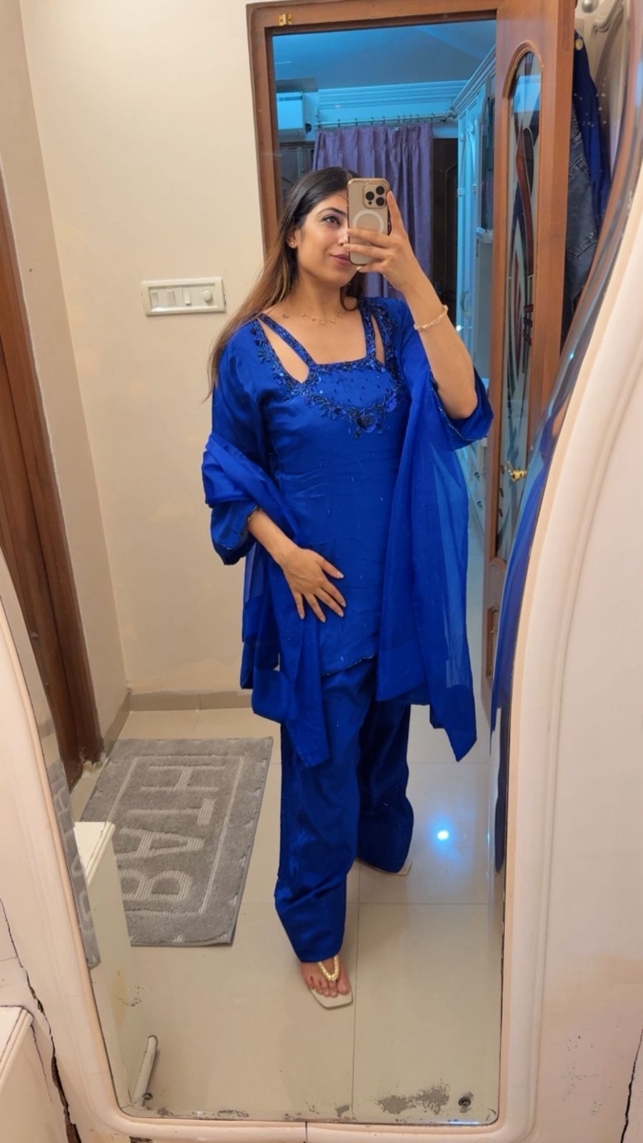 Crepe 3pc partywear suit with farshi salwar nd organza dupatta