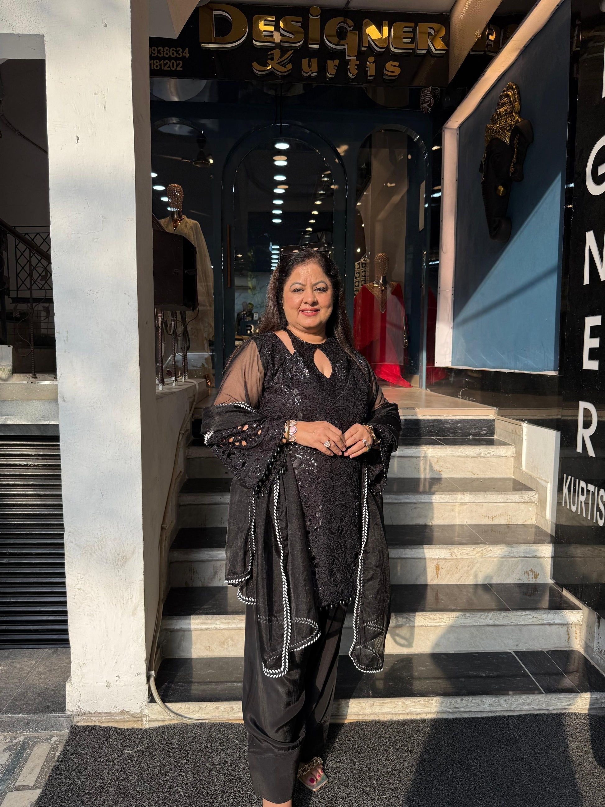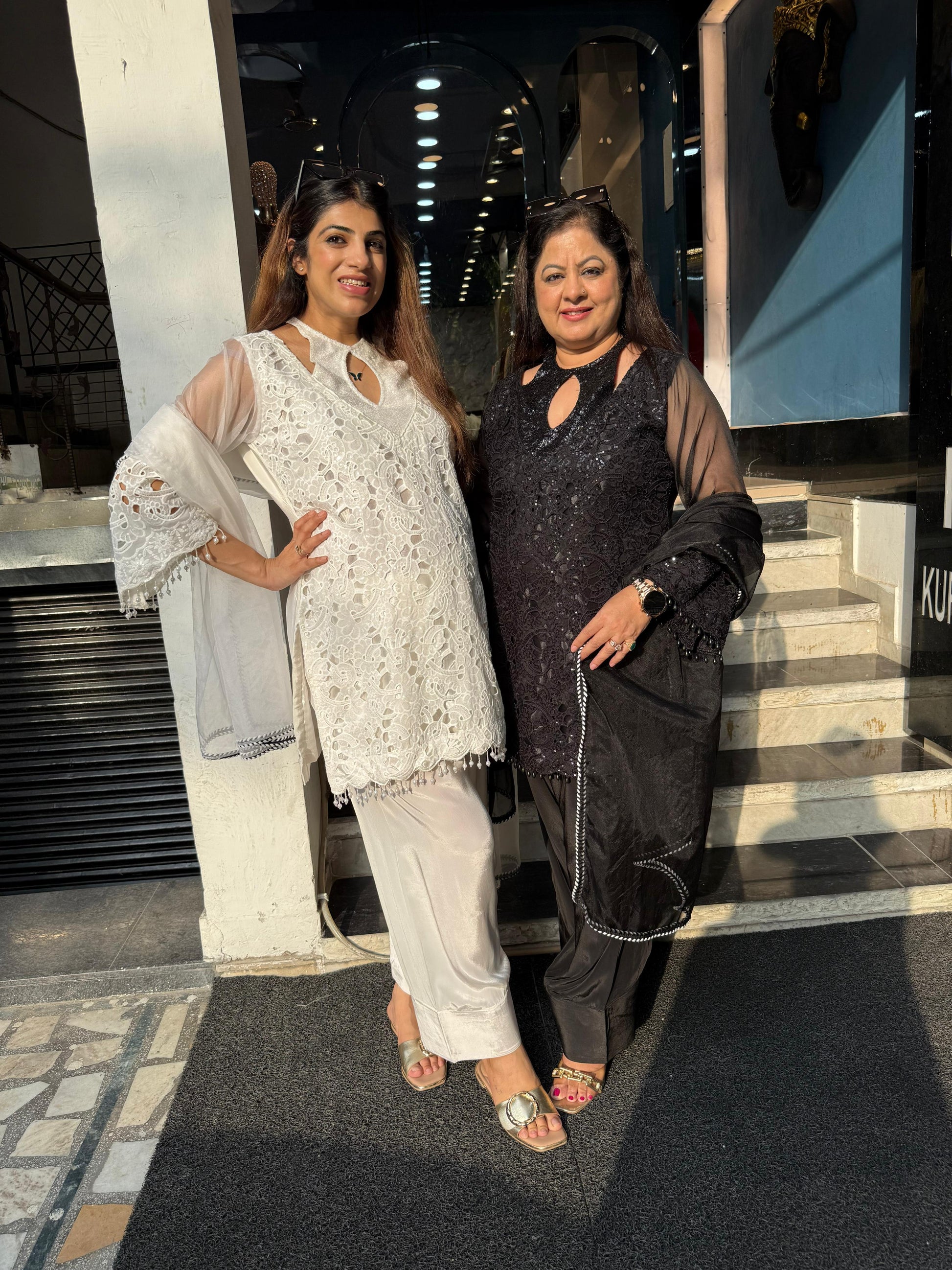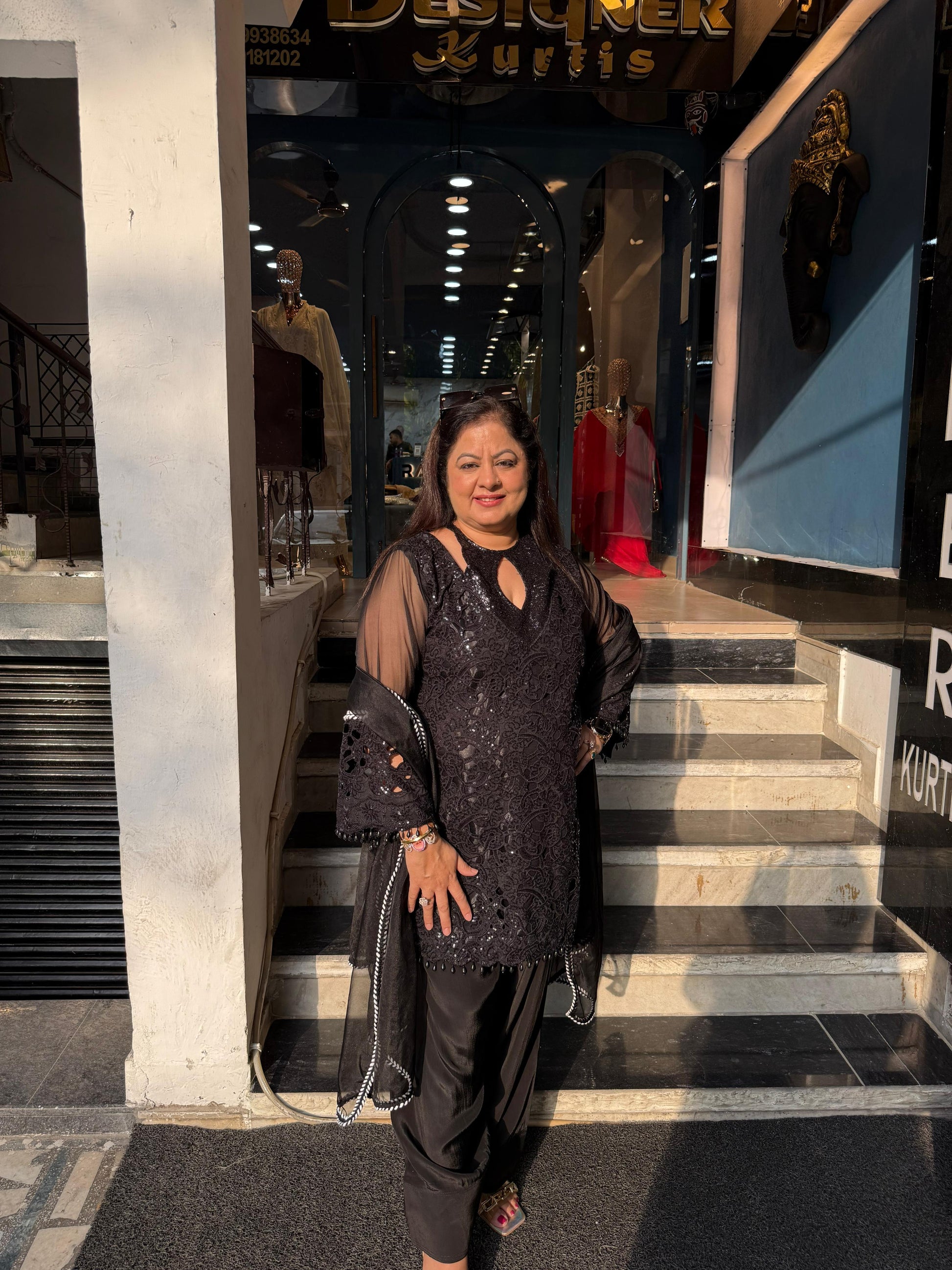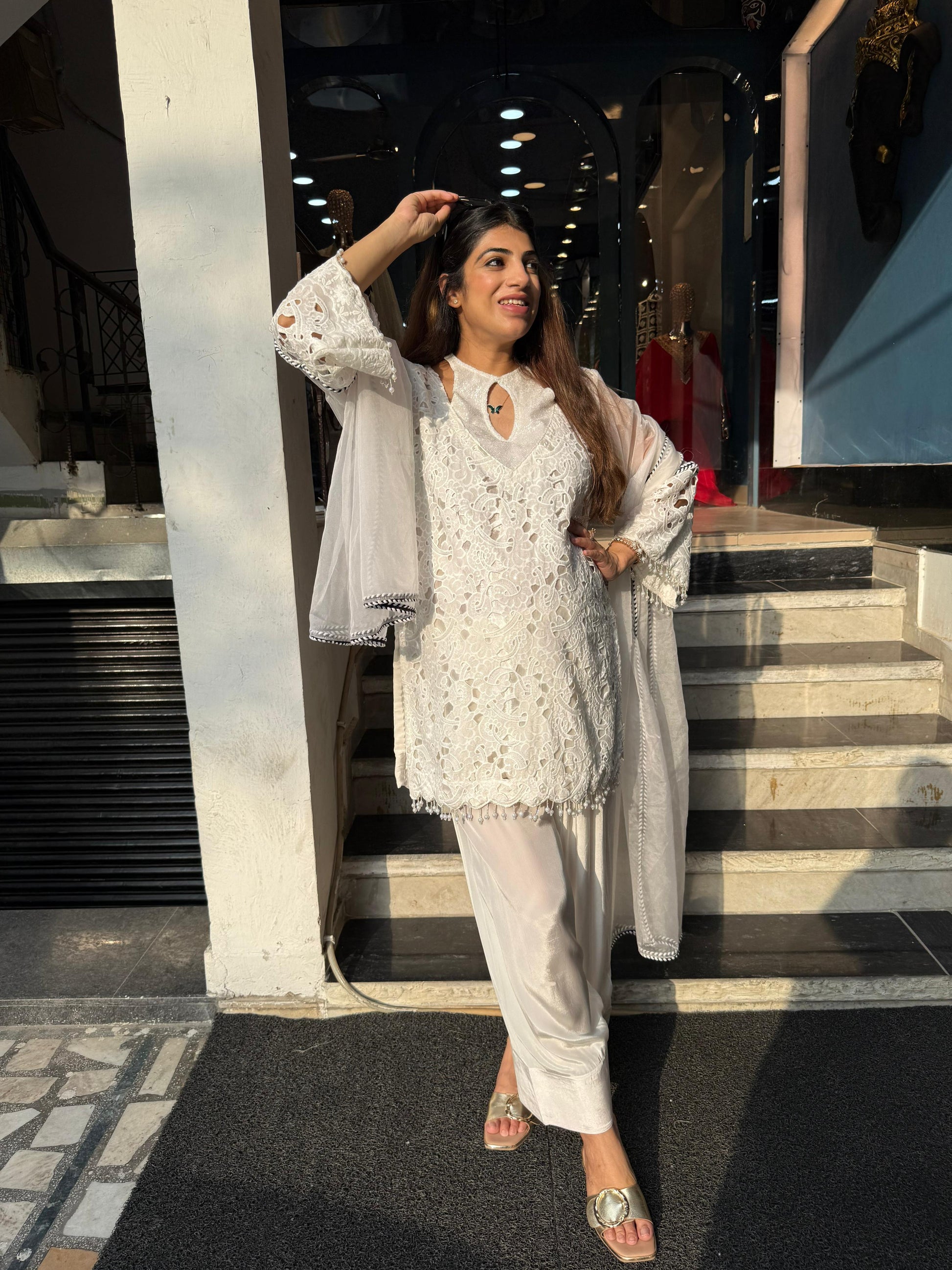 Designer Organza Schiffli 3pc Farshi Salwar Suit with Organza Dupatta