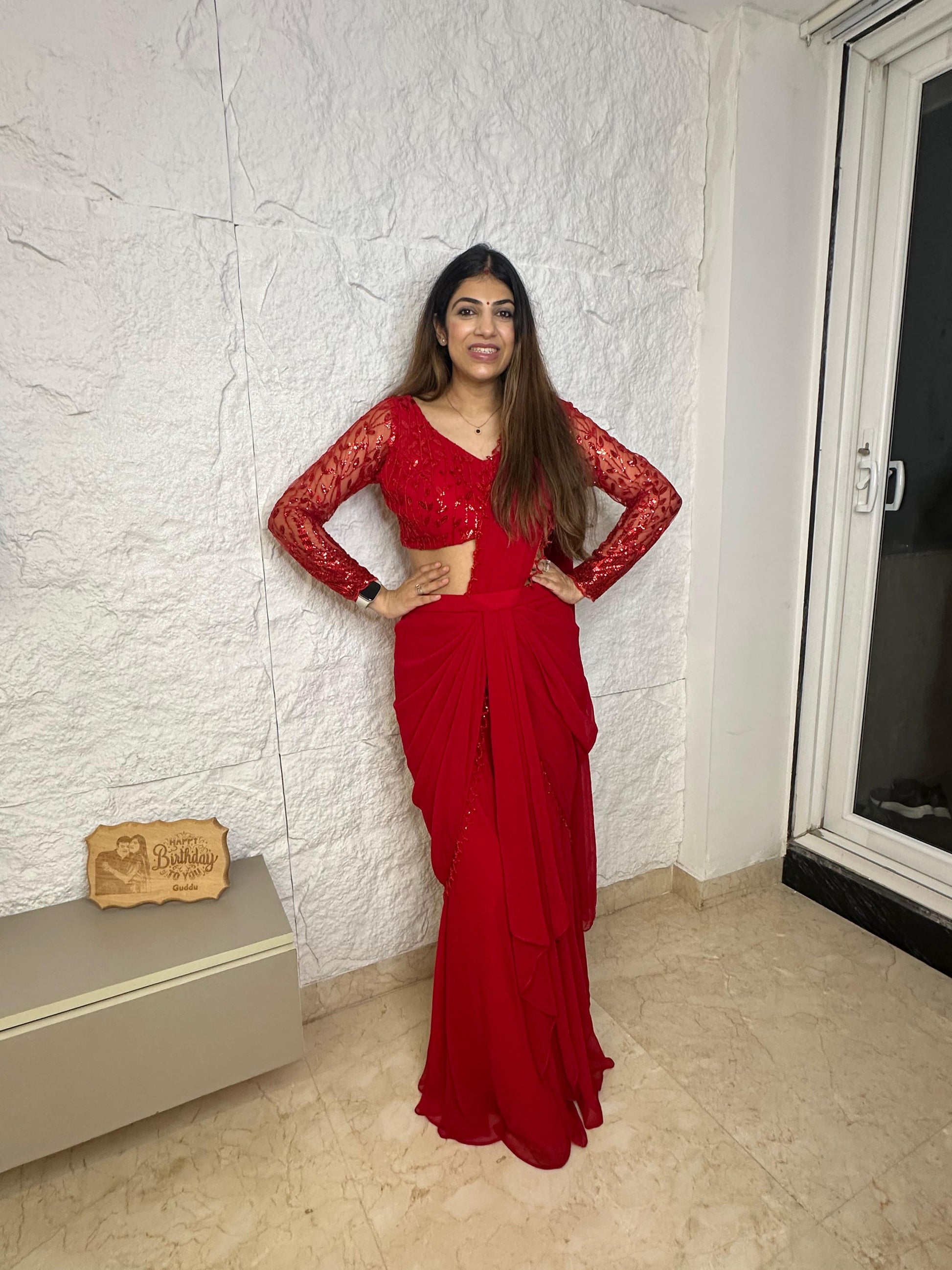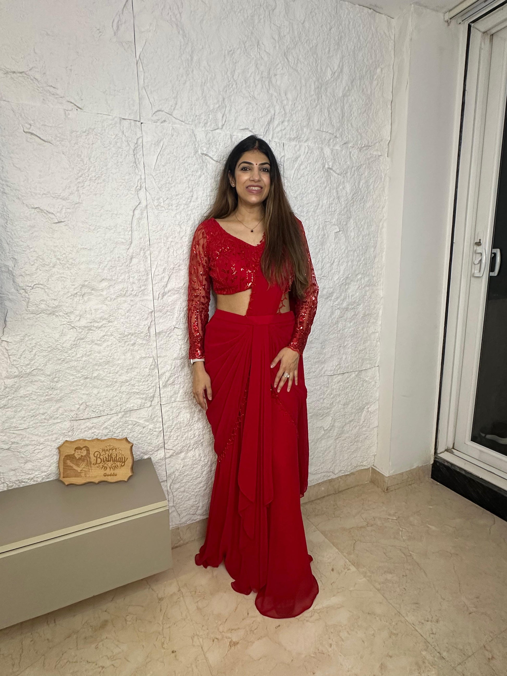 Increase quantity for Drape saree georgette with sequence work in-blouse front and back