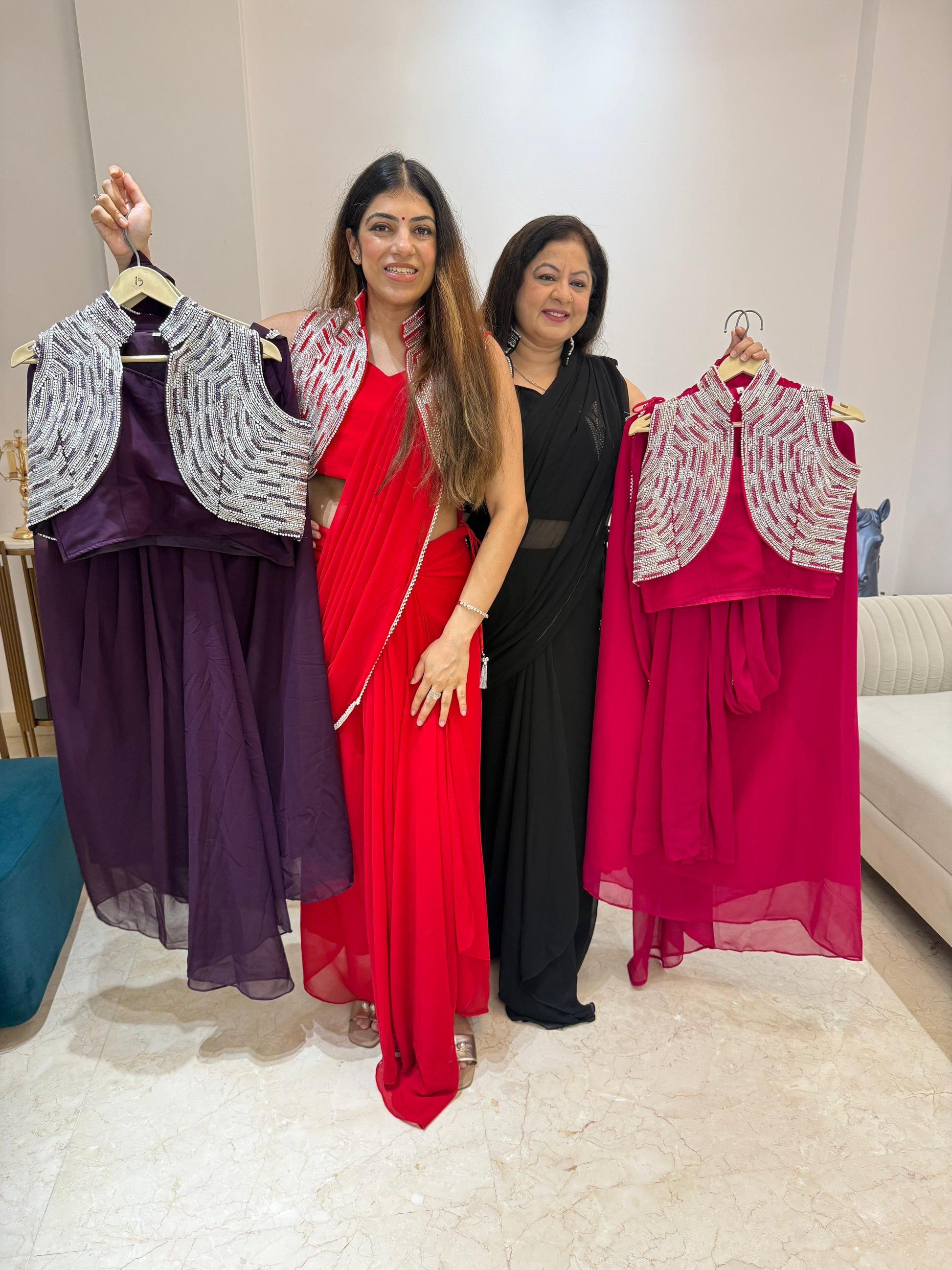 Georgette fabric Drap sarees full work 3pc set with inner nd jacket in all handwork