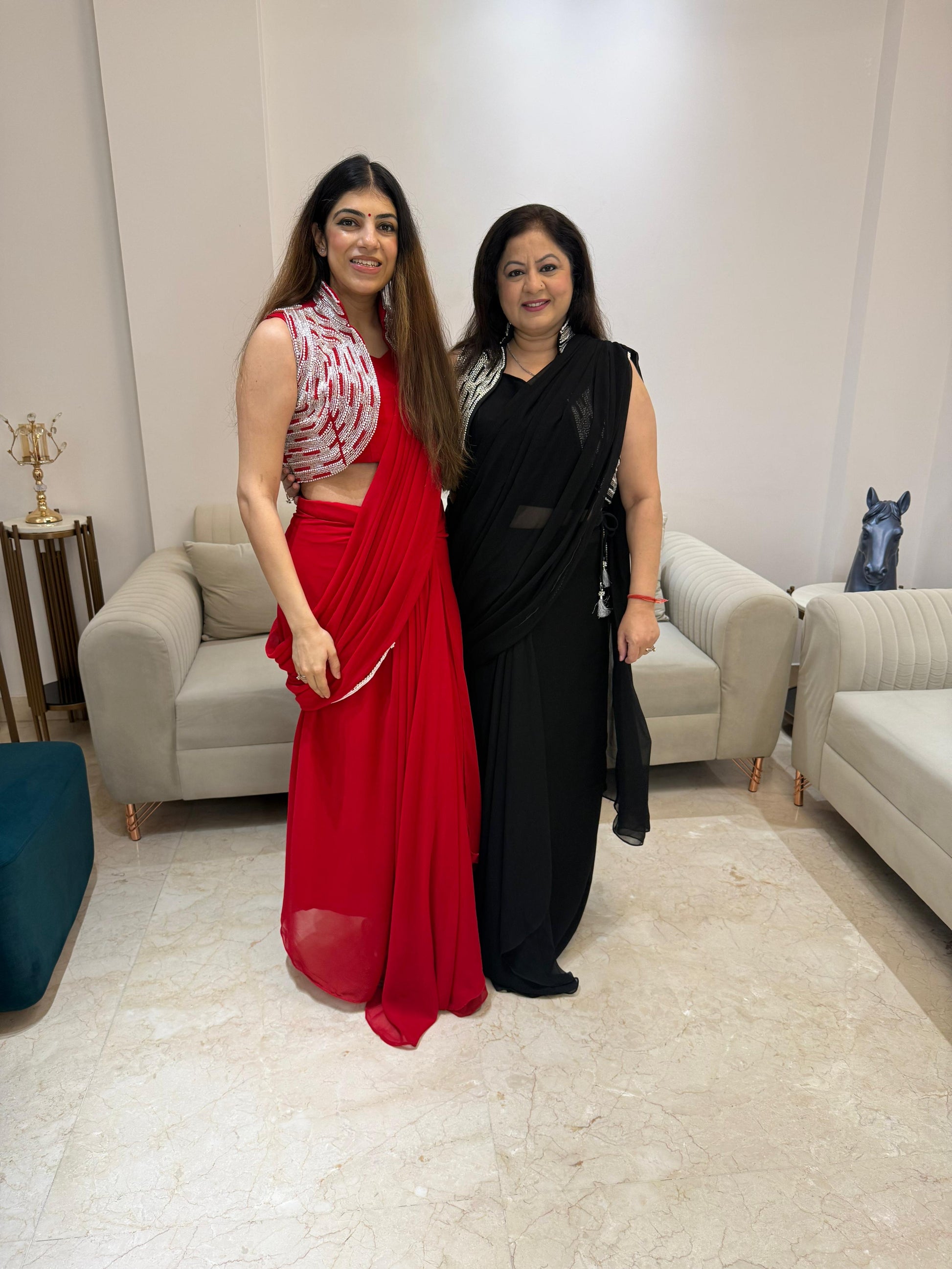 Increase quantity for Georgette fabric Drap sarees full work 3pc set with inner nd jacket in all handwork