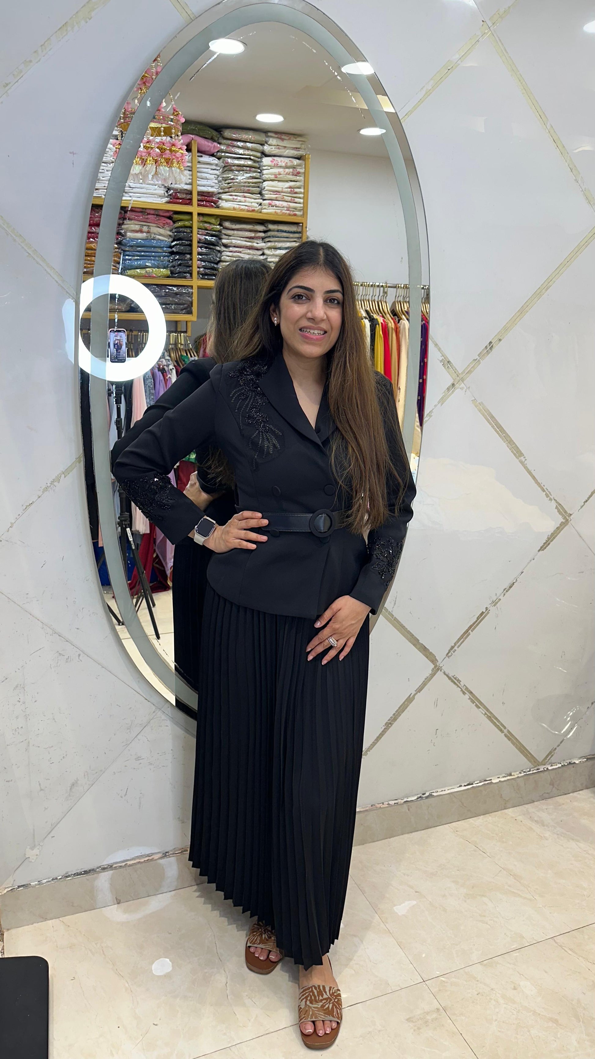 Japanese fabric western 2 pc, set with pleated skirt and handwork