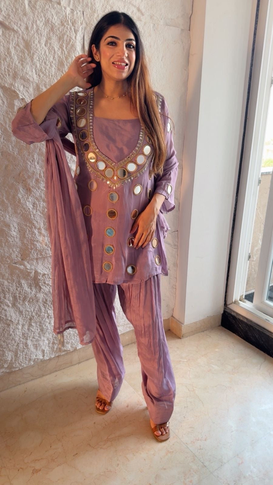 Decrease quantity for Pure Chinon Farshi salwar 4pc set sepret-inner nd original mirror work