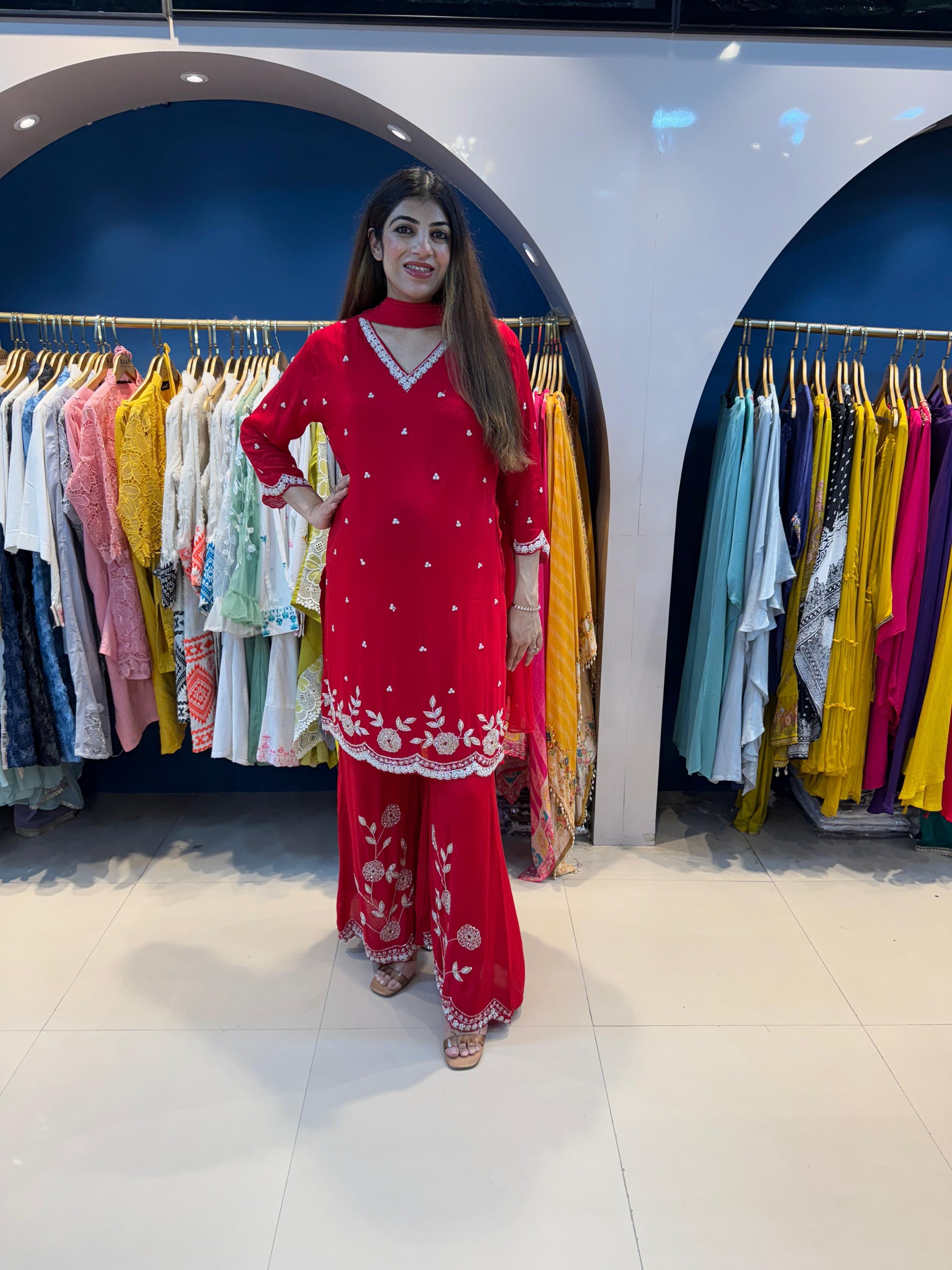 Pure Chinon Handwork 3 Pc Suit with Flared Palazzo