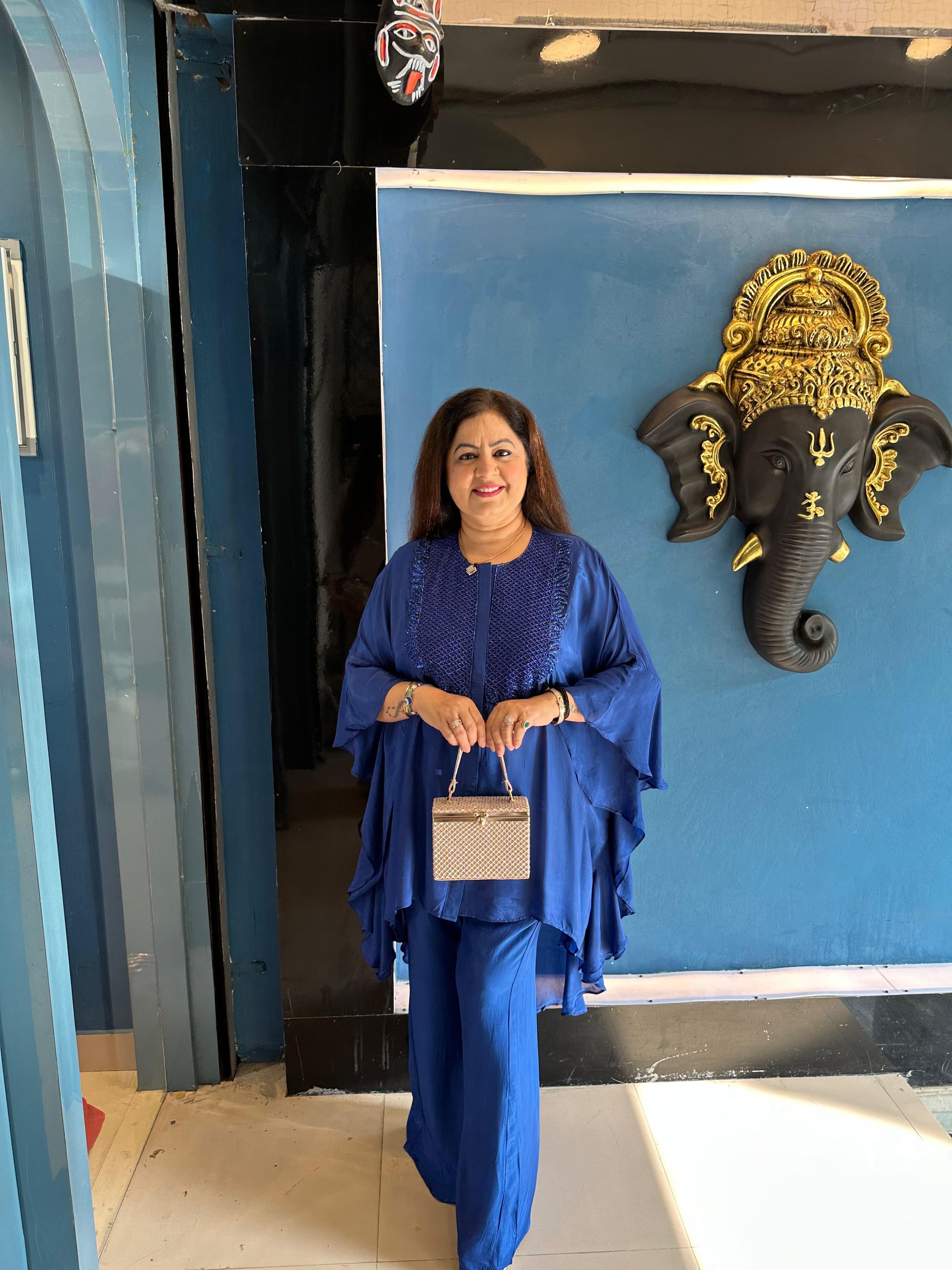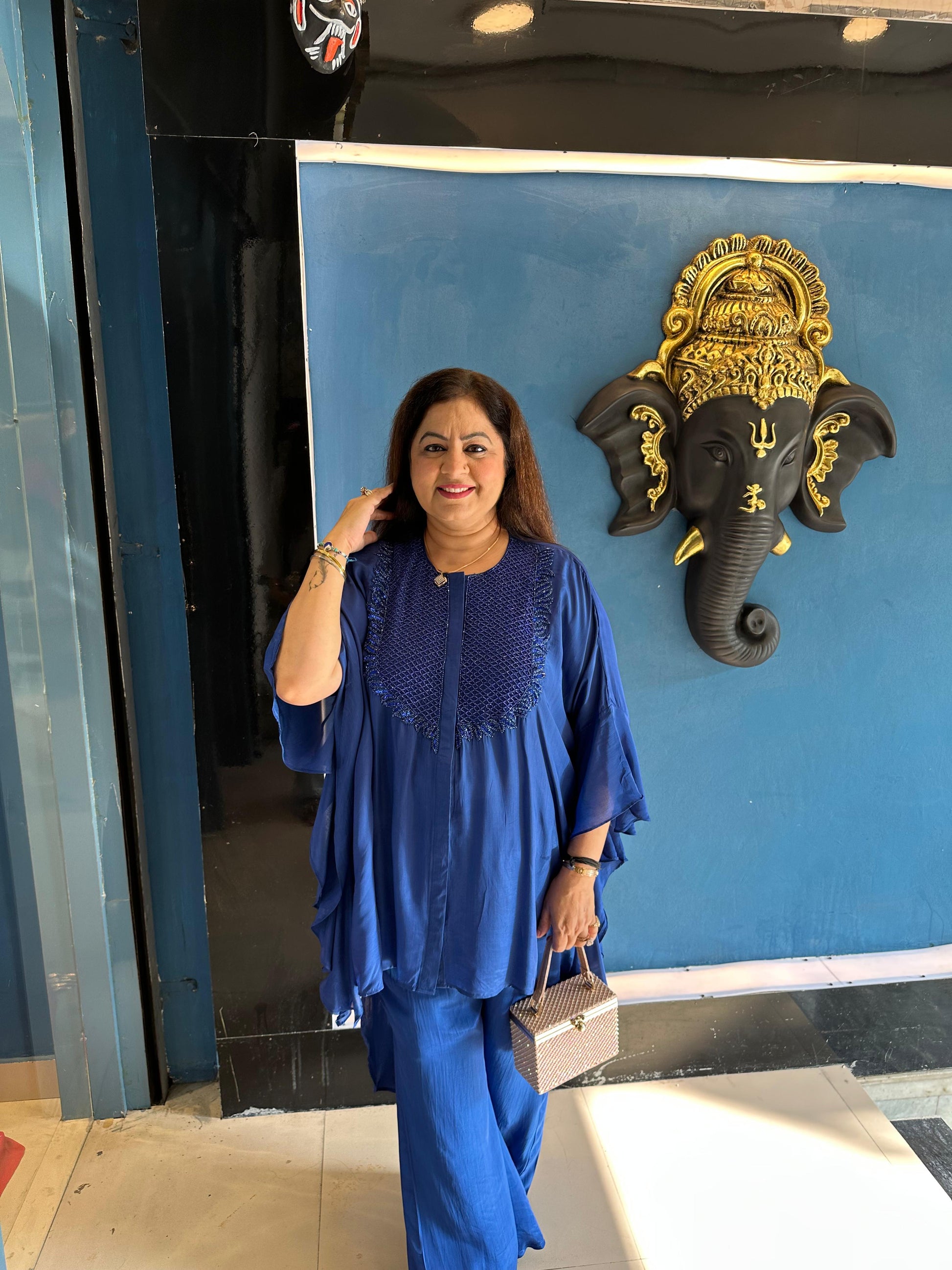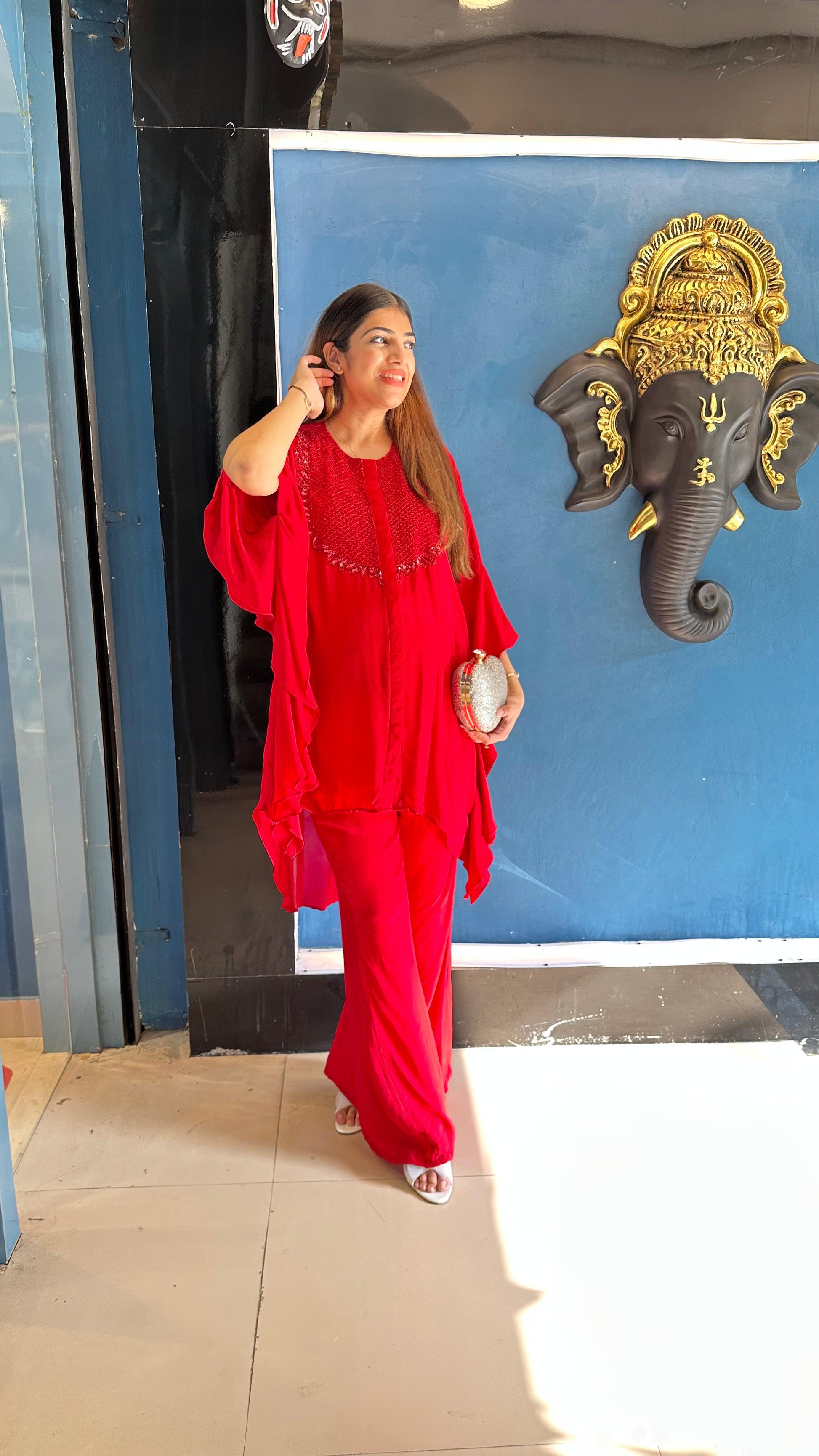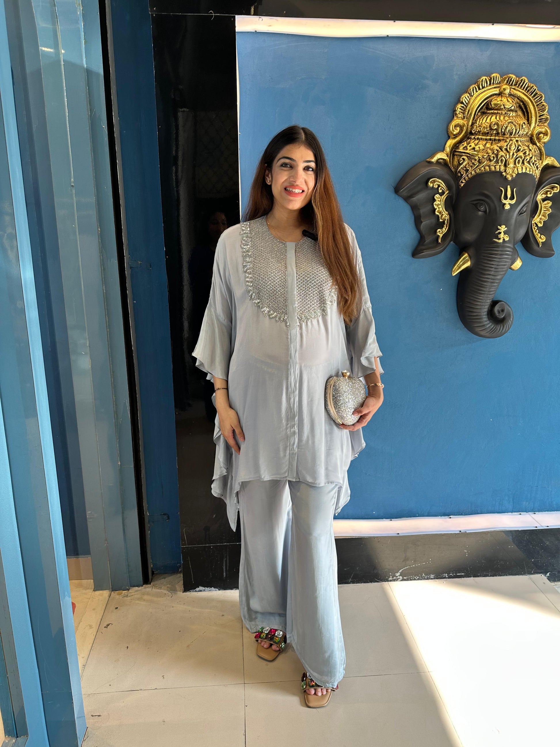 Pure Crepe Indo-Western Set with Complete Handwork Paired with Bell Bottom Pants