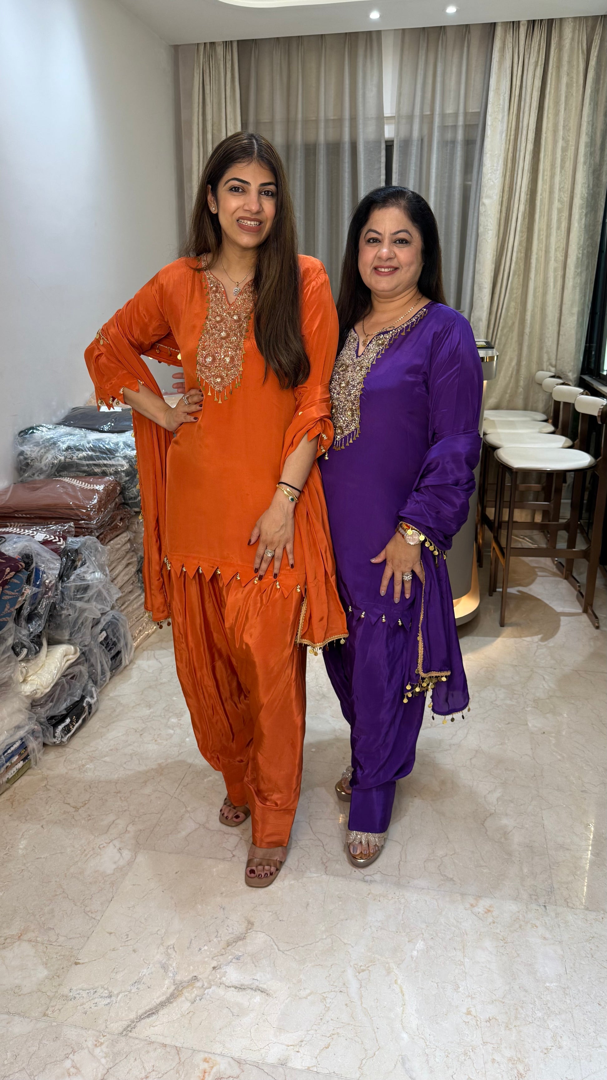 Pure crepe partywear 3pc dupatta set with farshi salwar