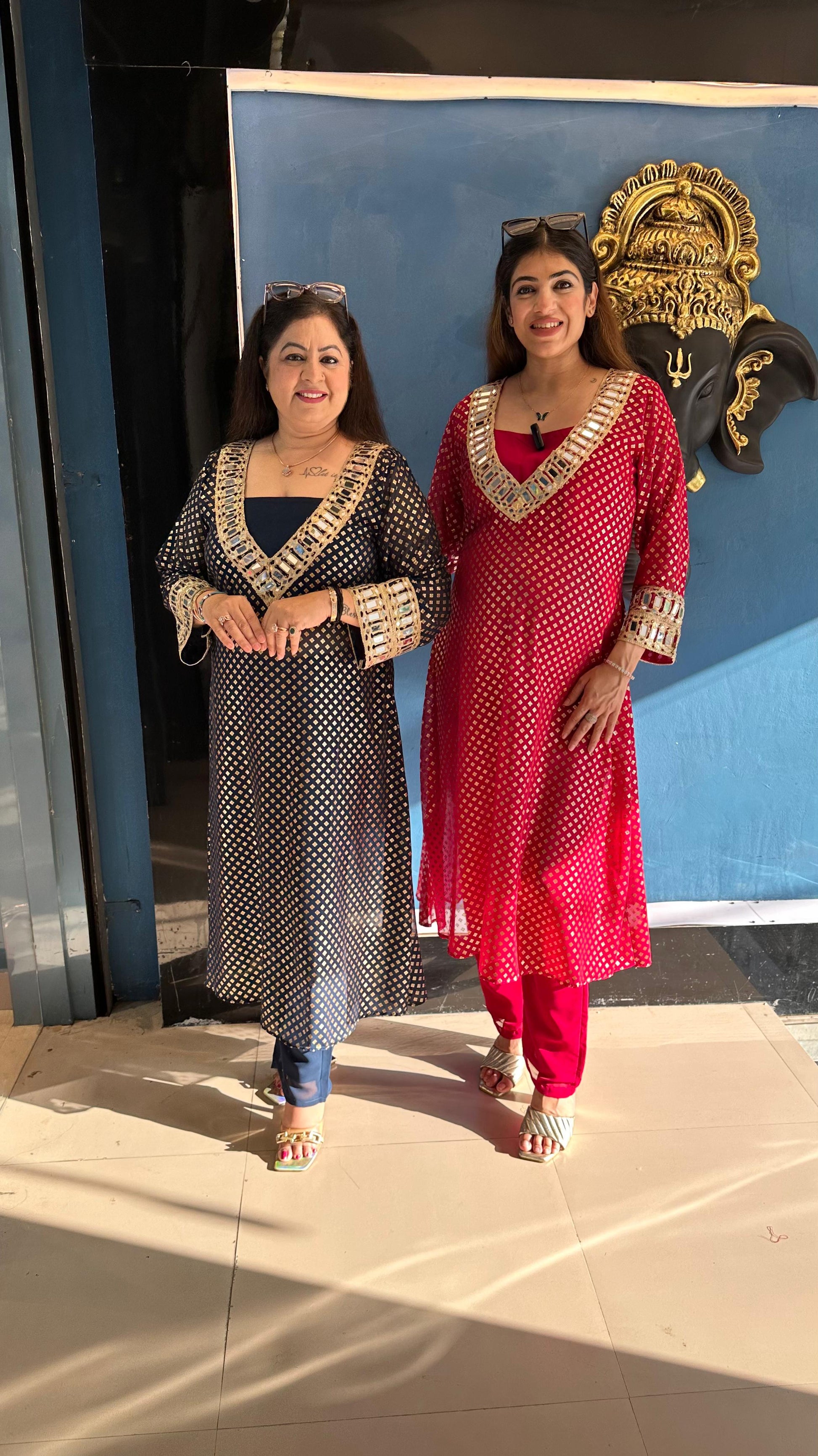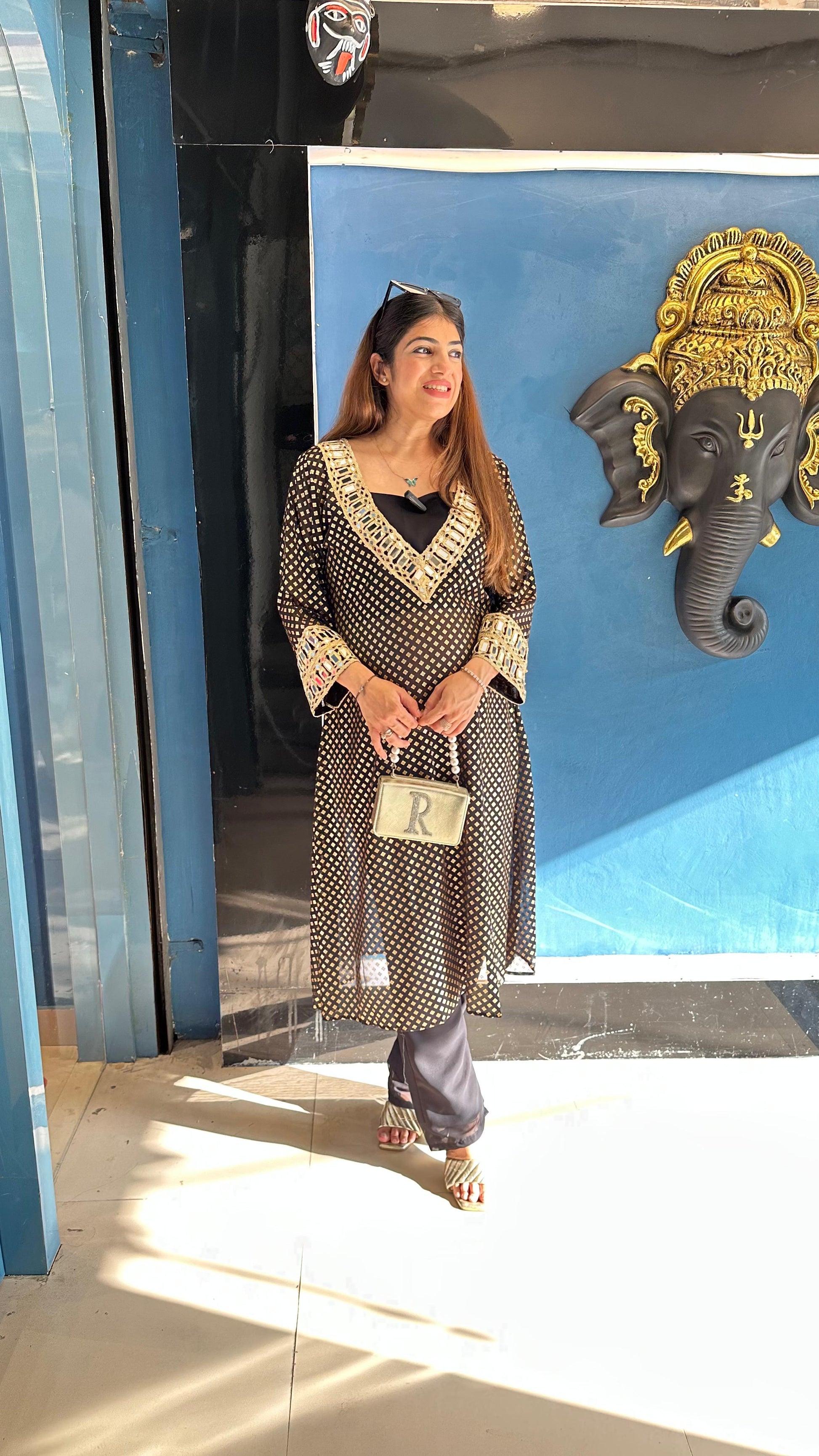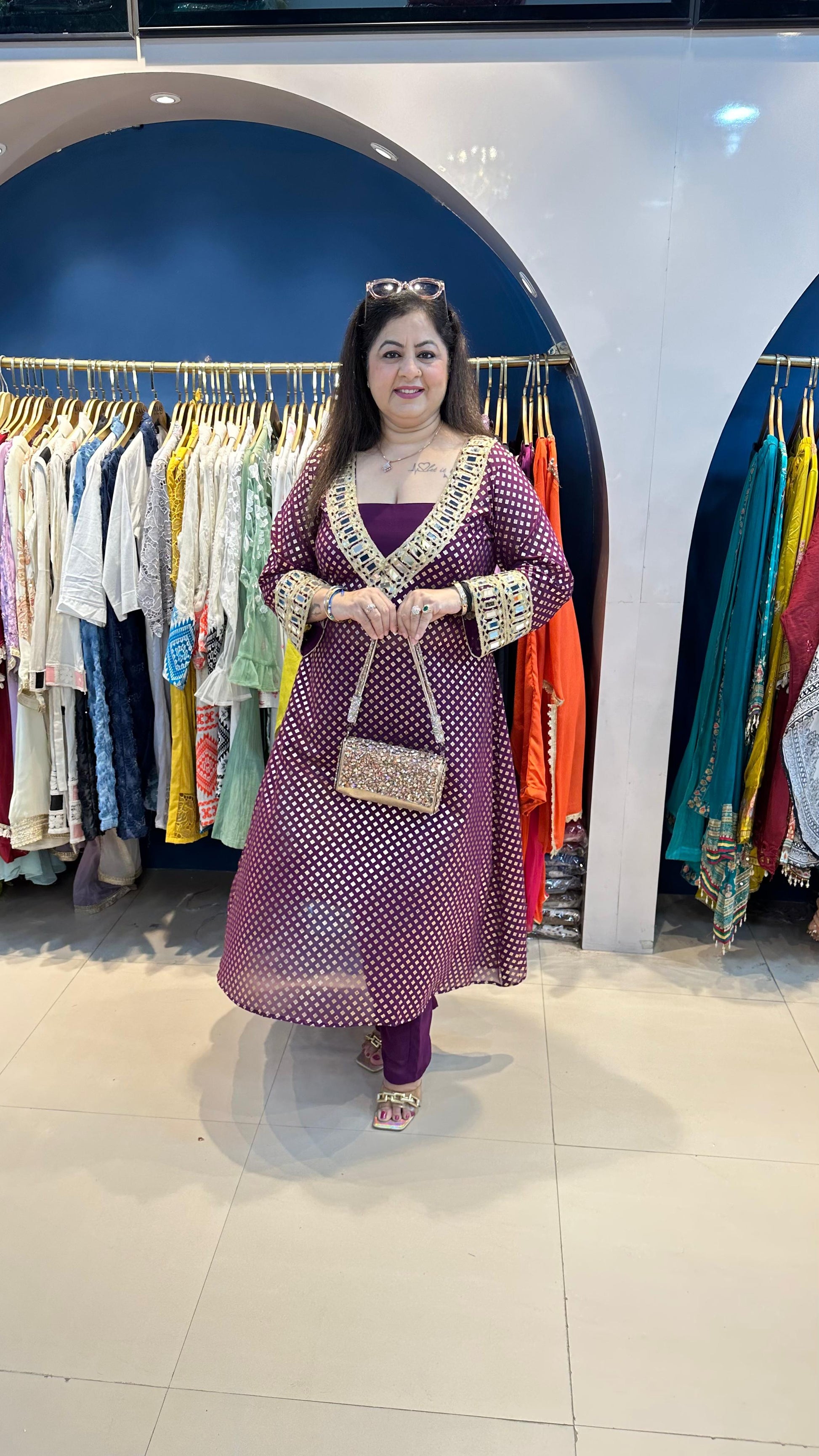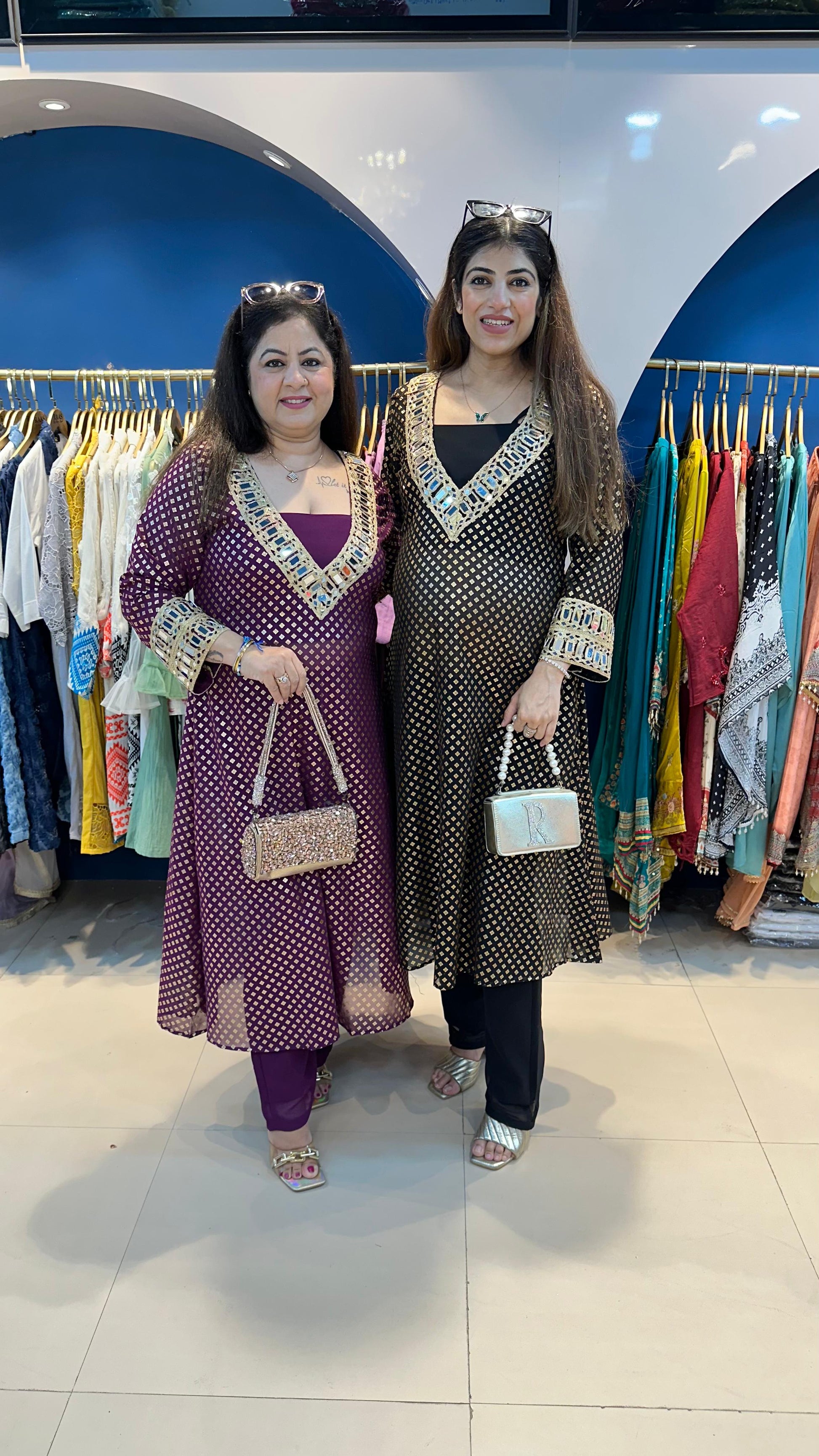 Pure Viscose Georgette Foil Print 3pc Set with Pants & Inner Highlighted with Mirror Lace