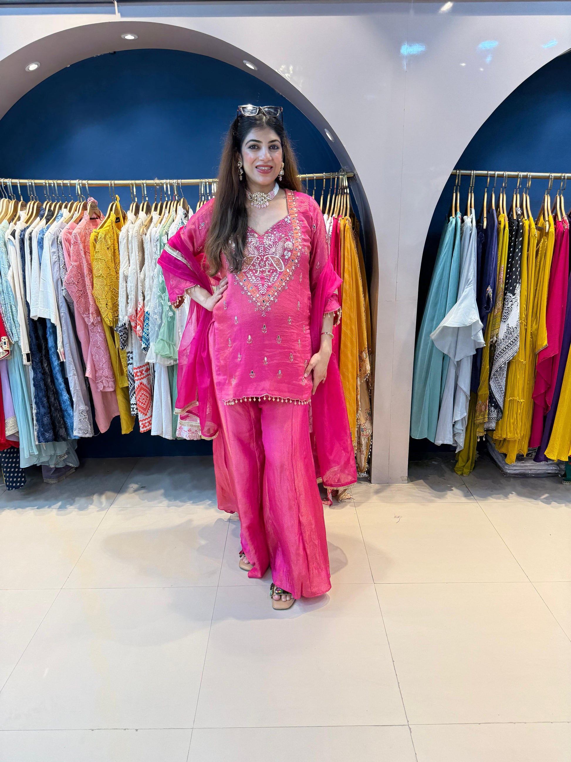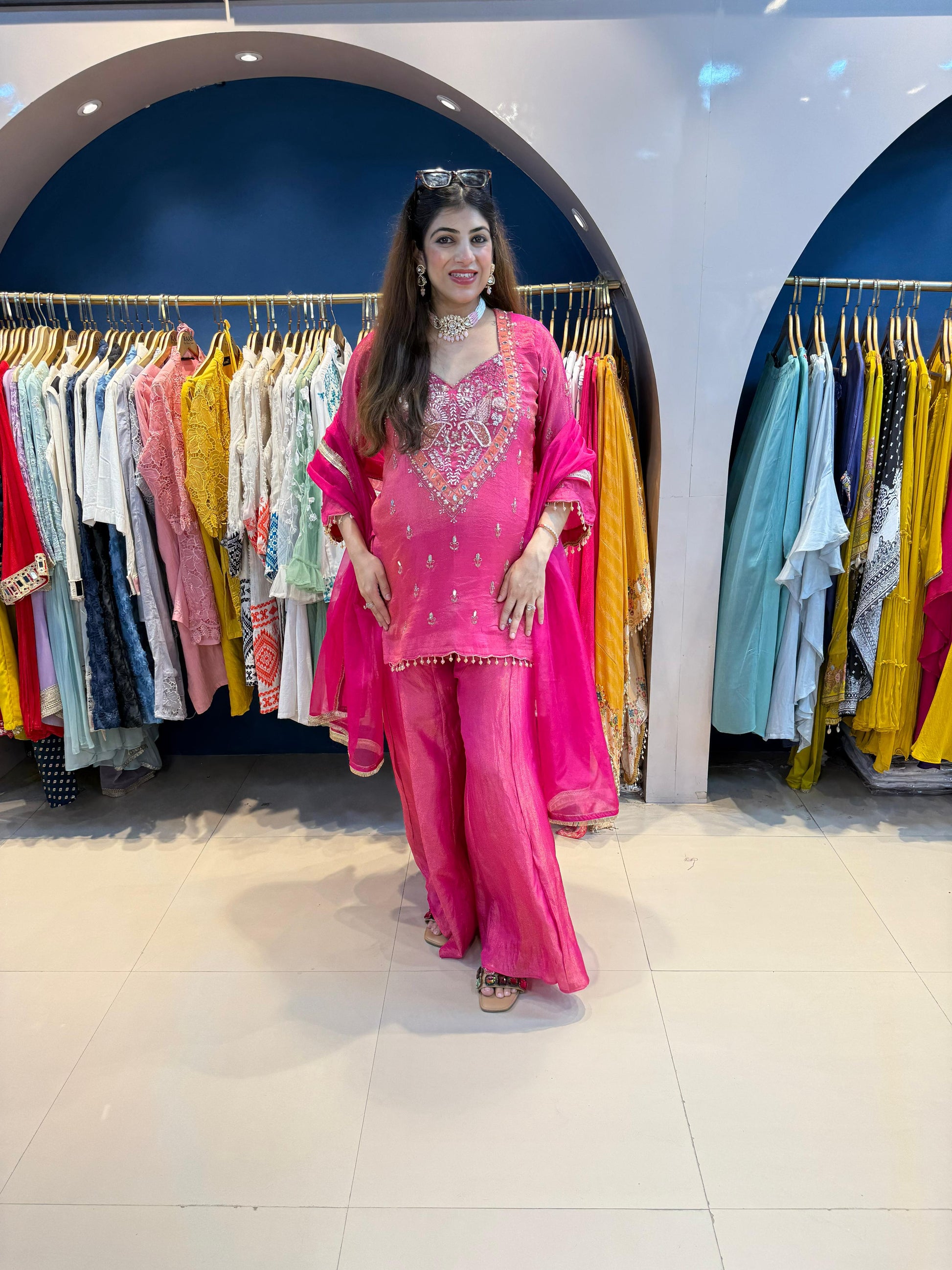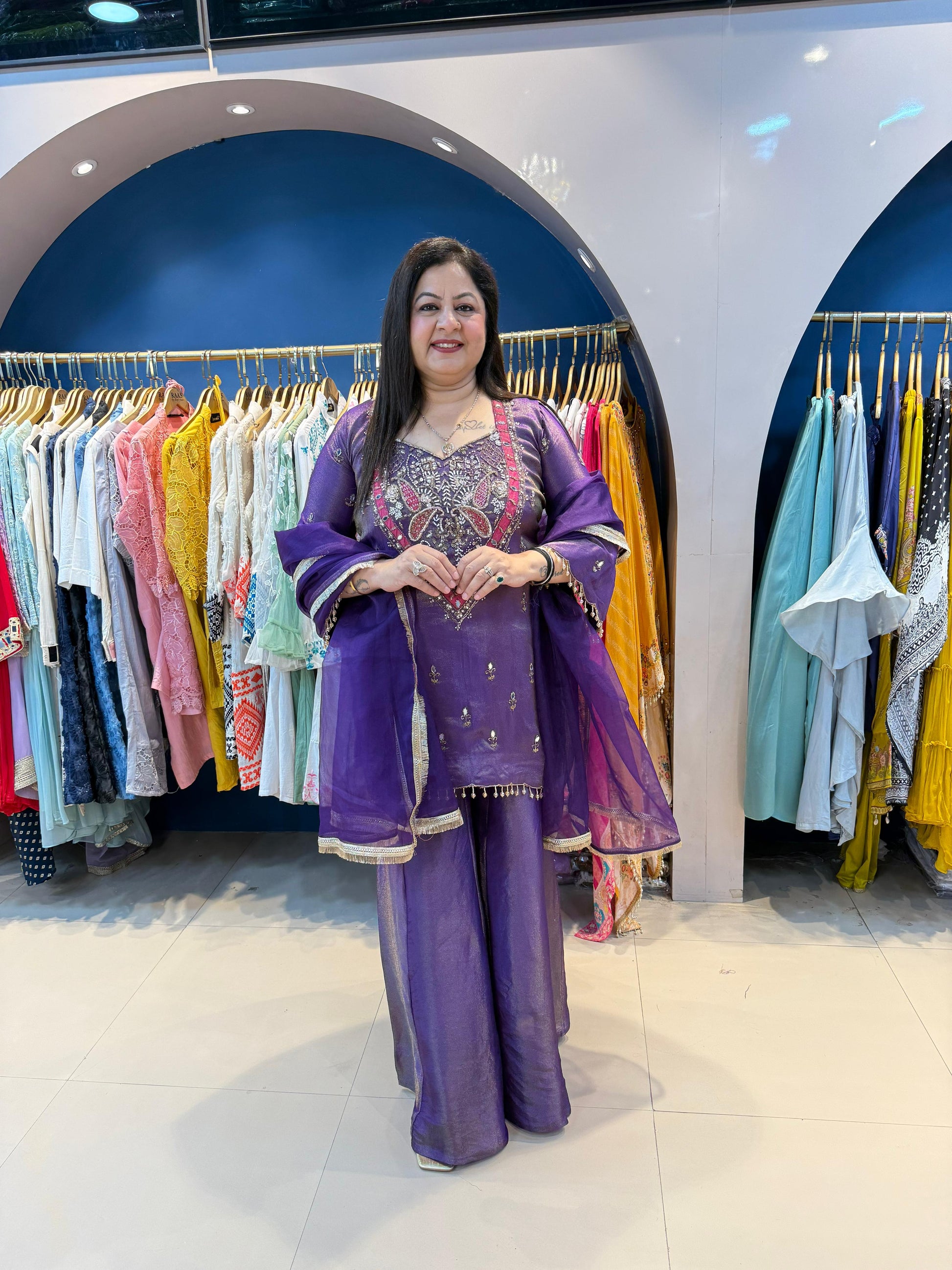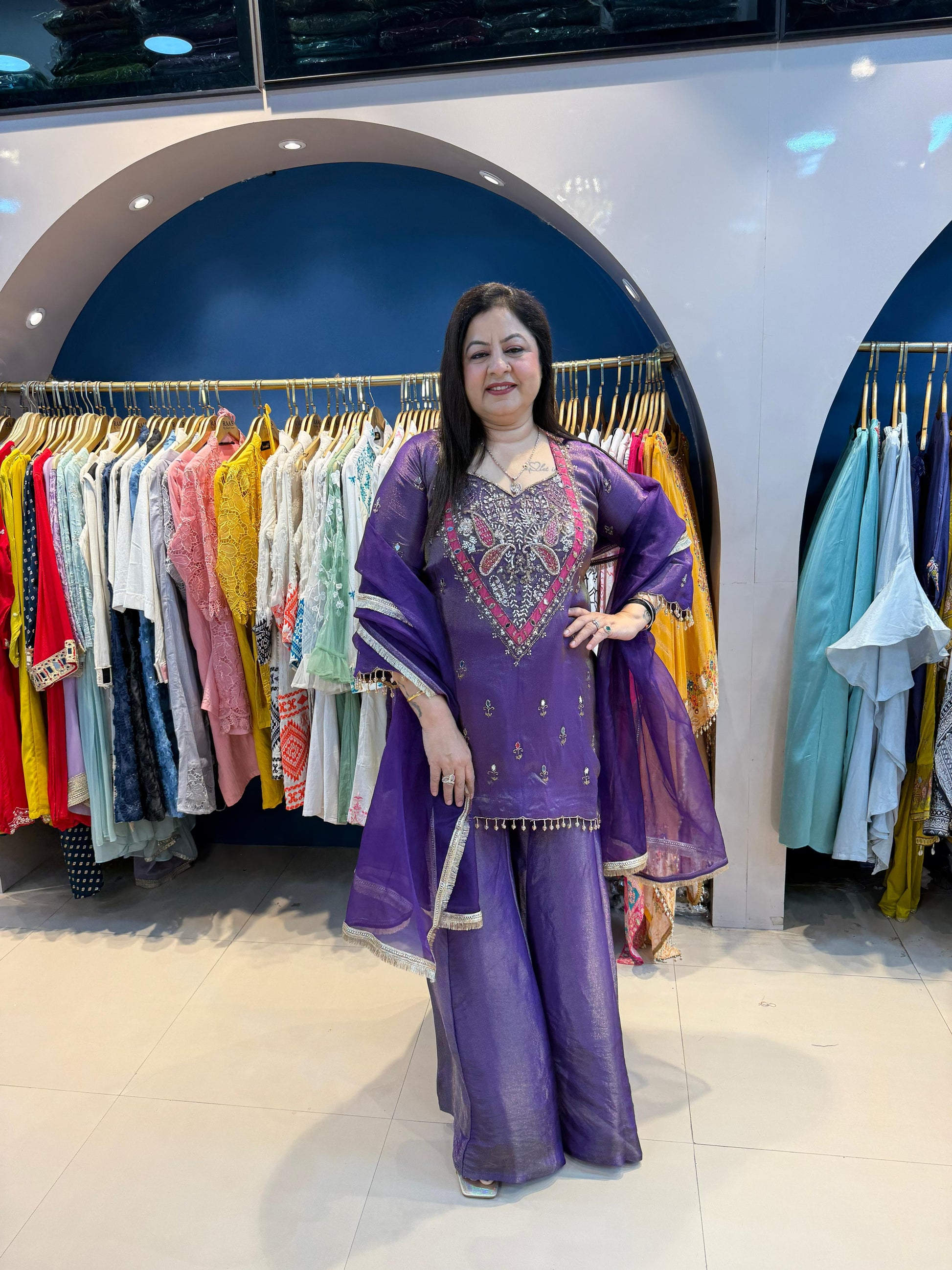 Shimmer Tissue 3 Pc Suit with Handwork & Kali Palazzo