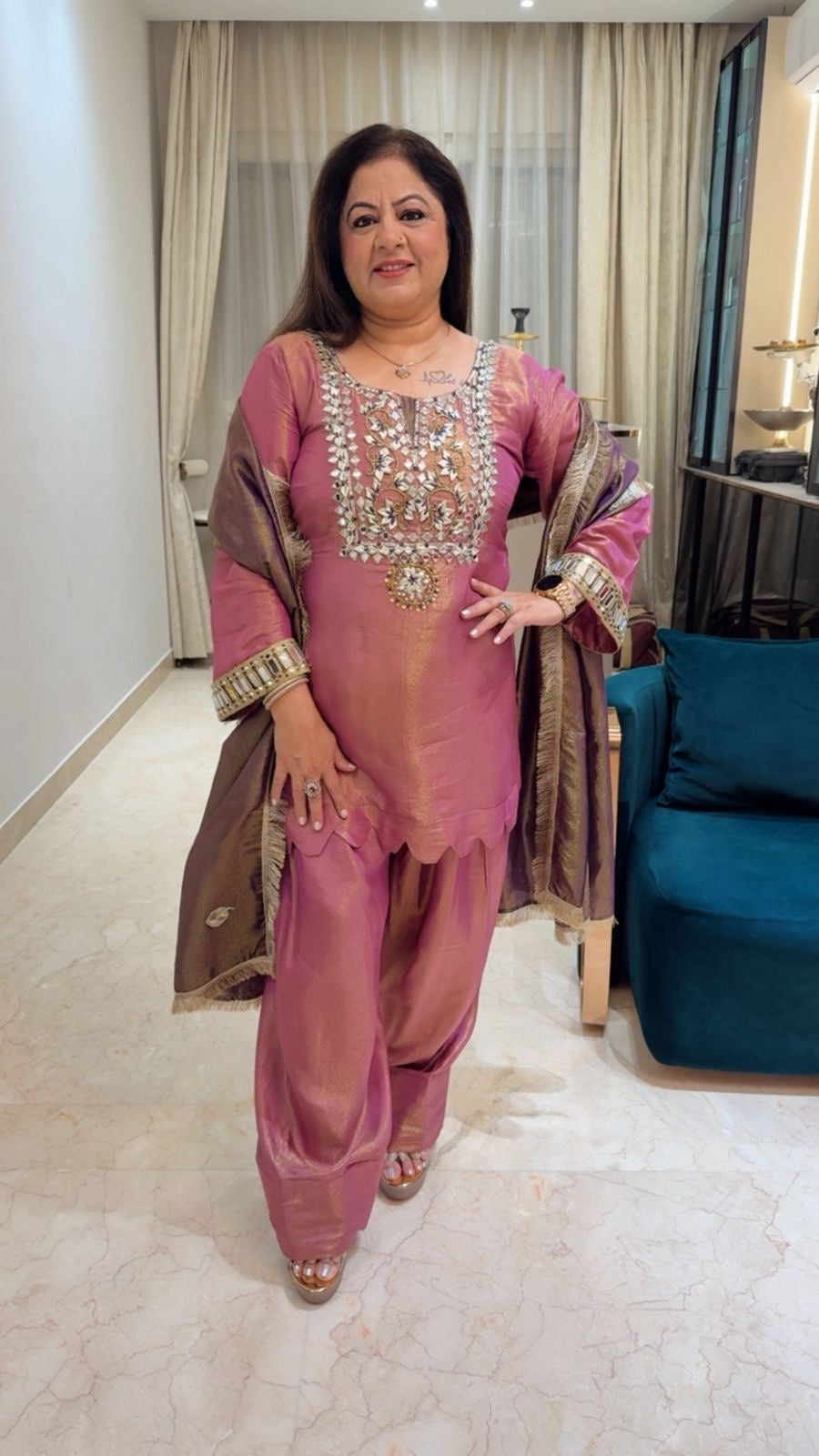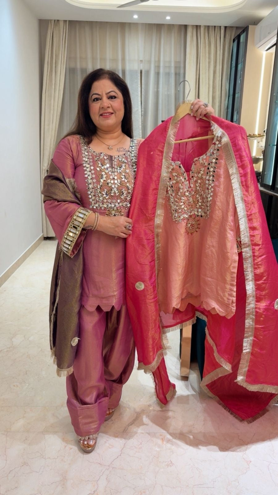 Shimmer tissue Farshi salwar 3pc set mirror work with combinations dupatta