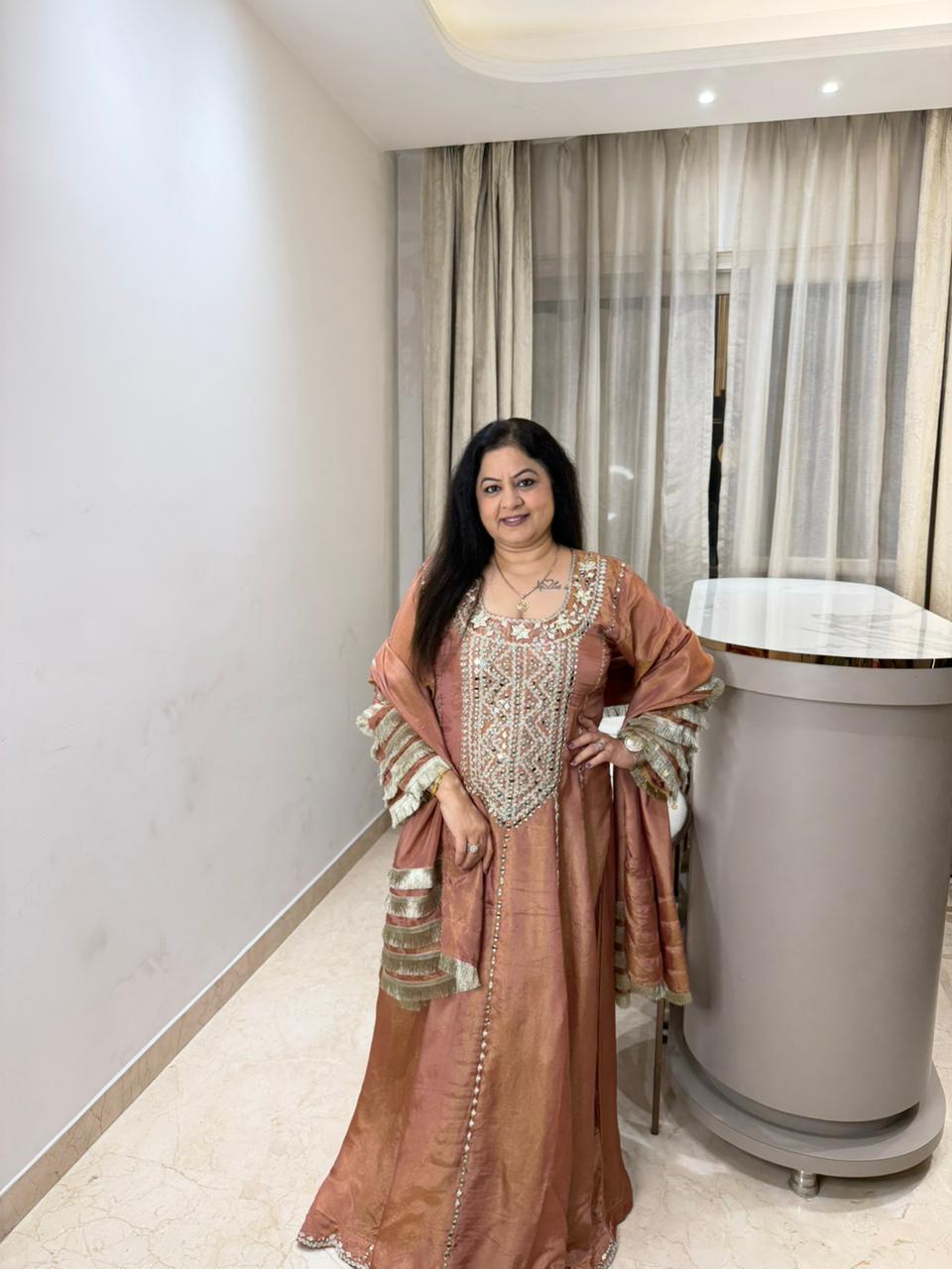 Simmar tissue long partywear anarkali set with lace work duppata and all original mirror work