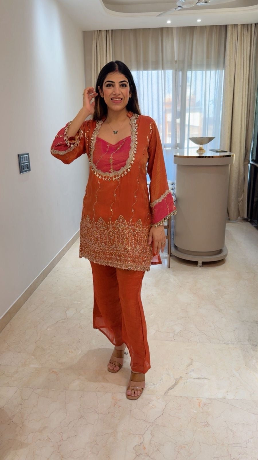 Increase quantity for Simmar tissue partywear 2pc set all handwork with bell bottom plazo
