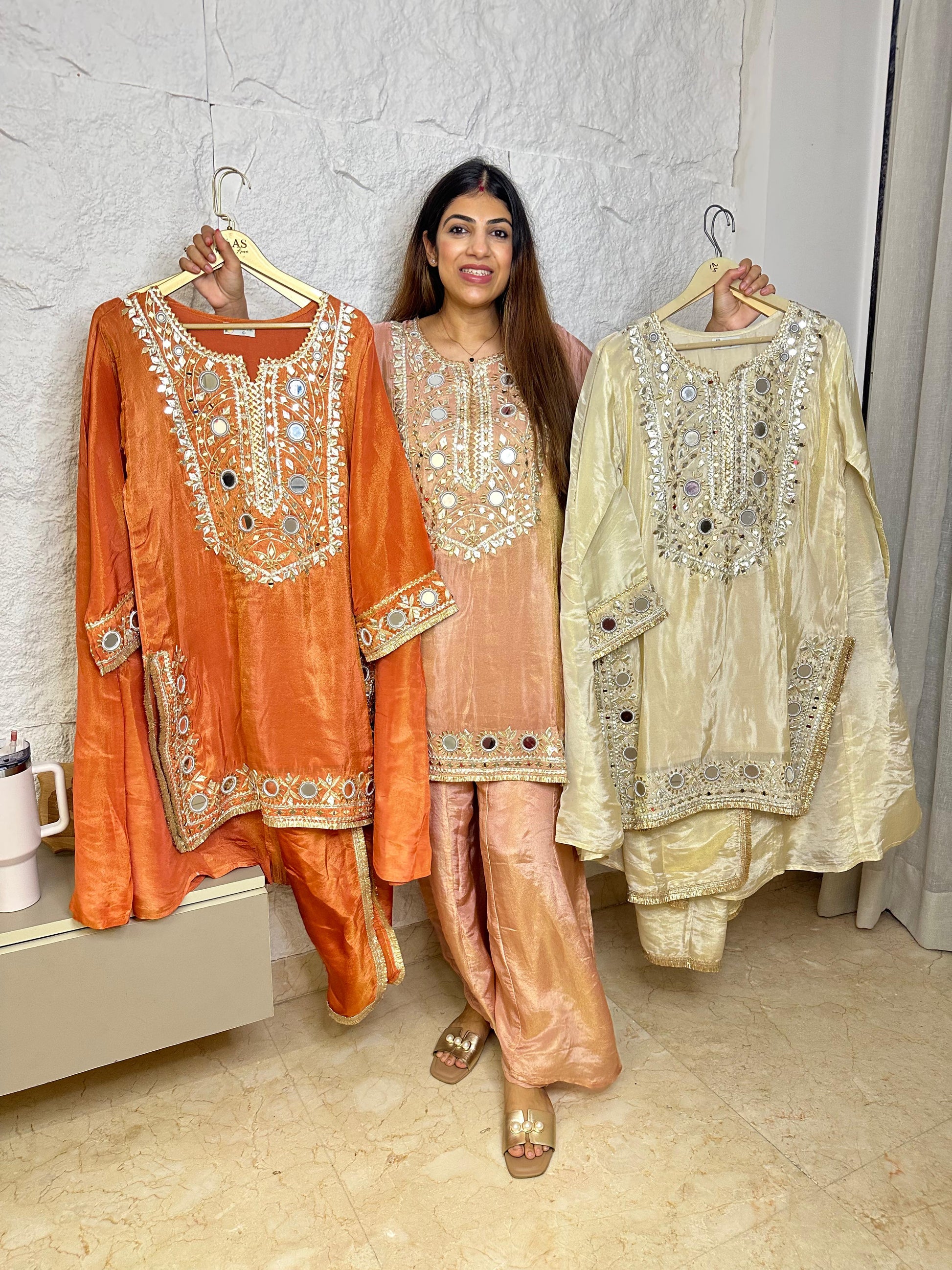 Increase quantity for Simmar tissue partywear 3pc suit gota nd mirror work nd kali plazo