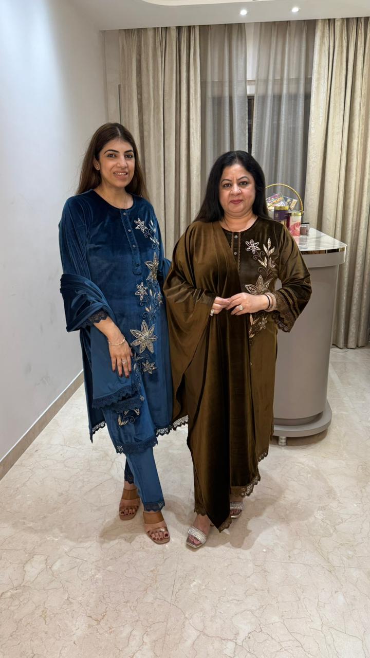 Stretchable premium velvet 3 pc suit with embroidery plus handwork