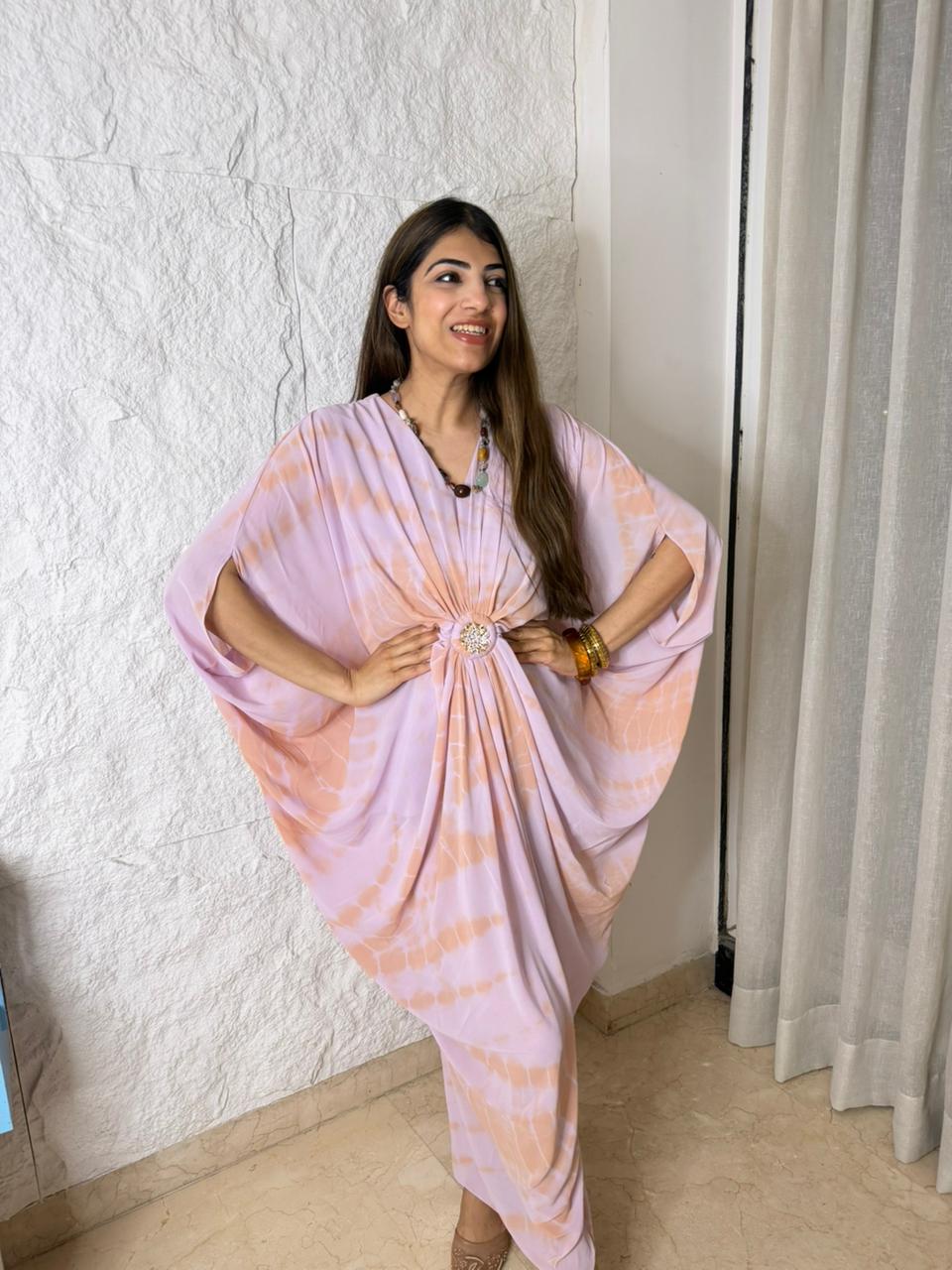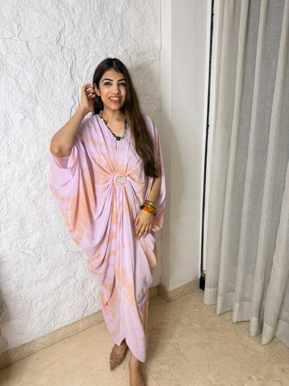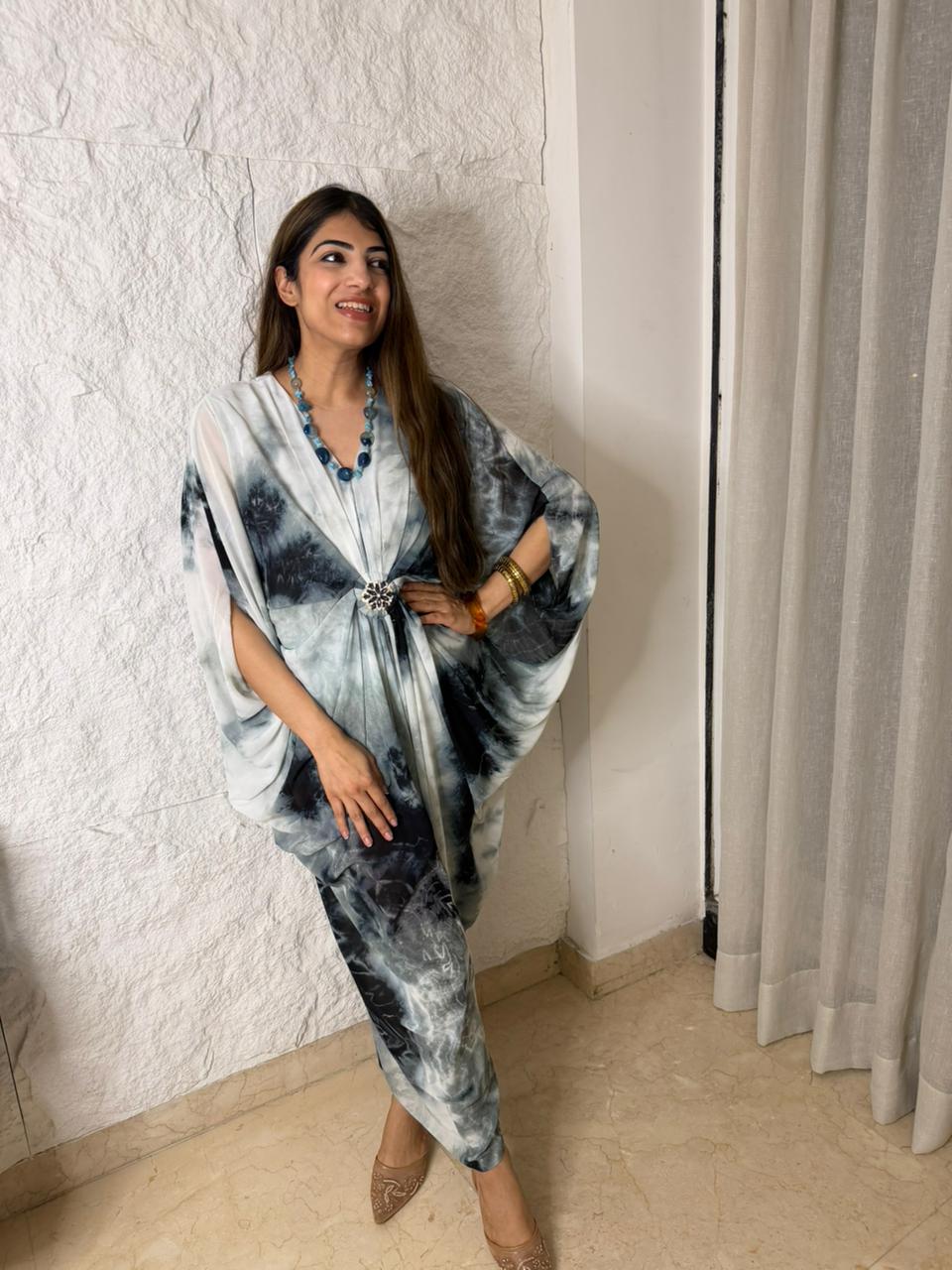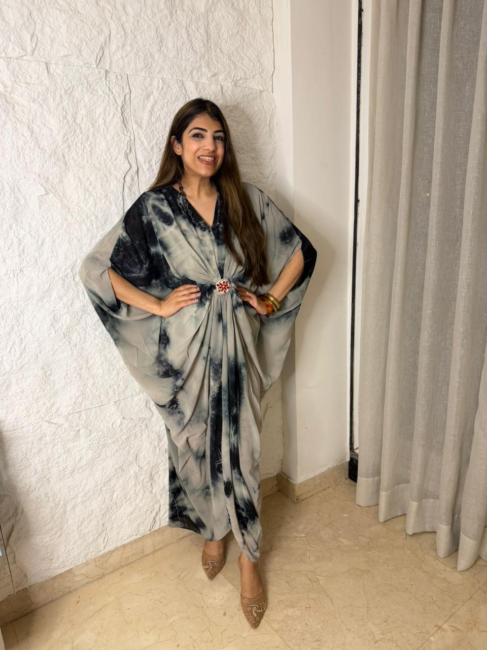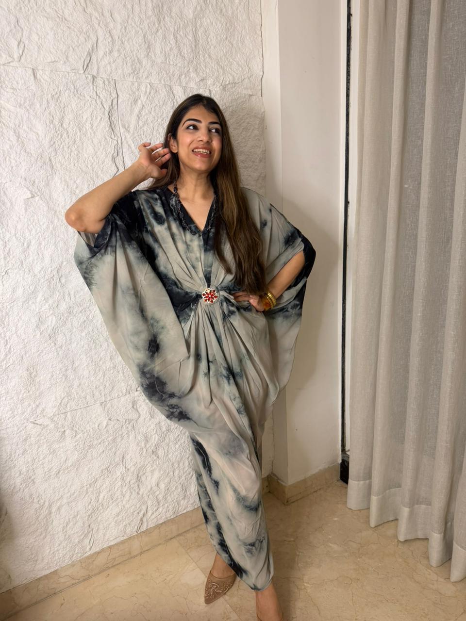 Decrease quantity for Tye & dye cowl dress with brooch with neck piece